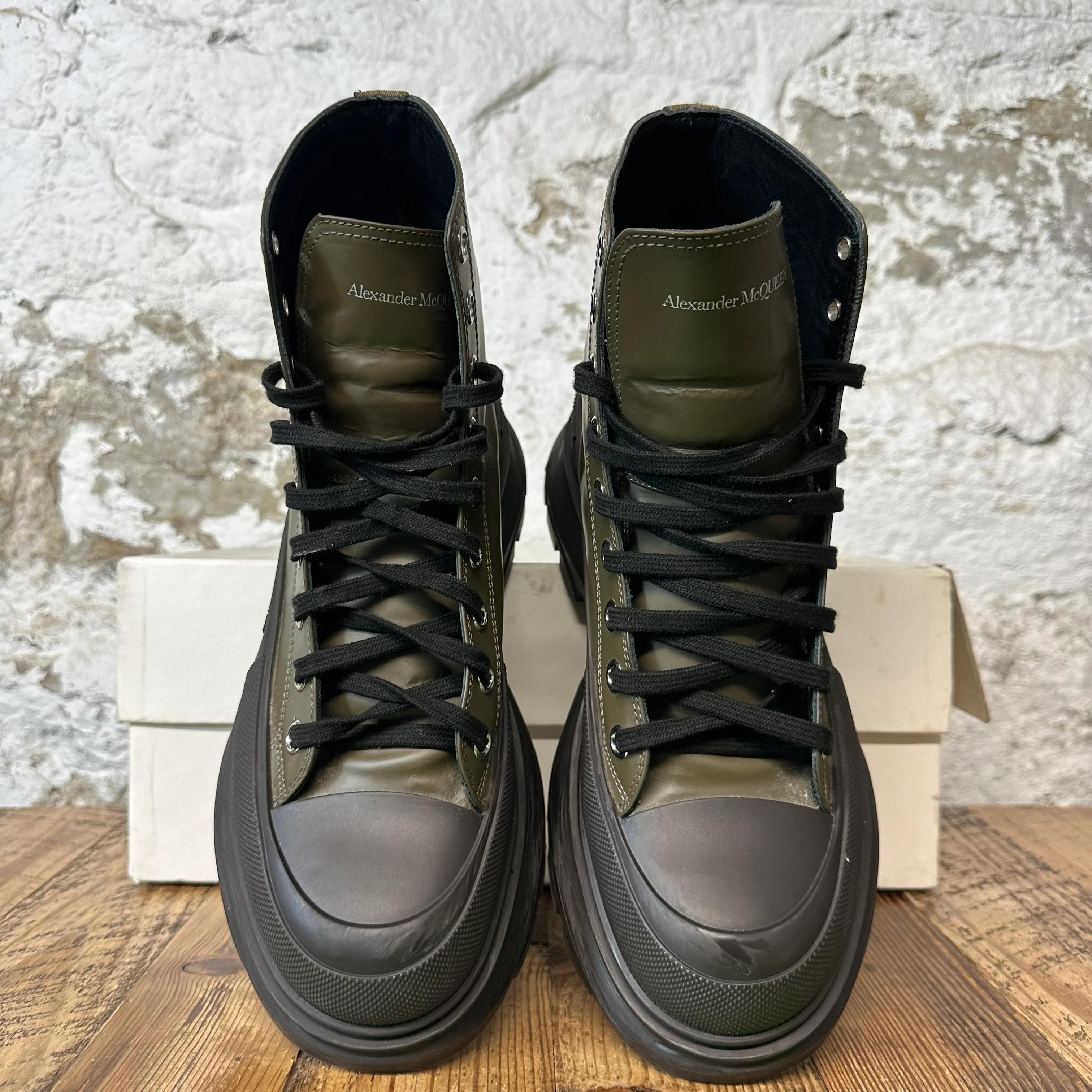 Alexander Mcqueen High Olive Green Black Tread Boot Sz 9 (42)