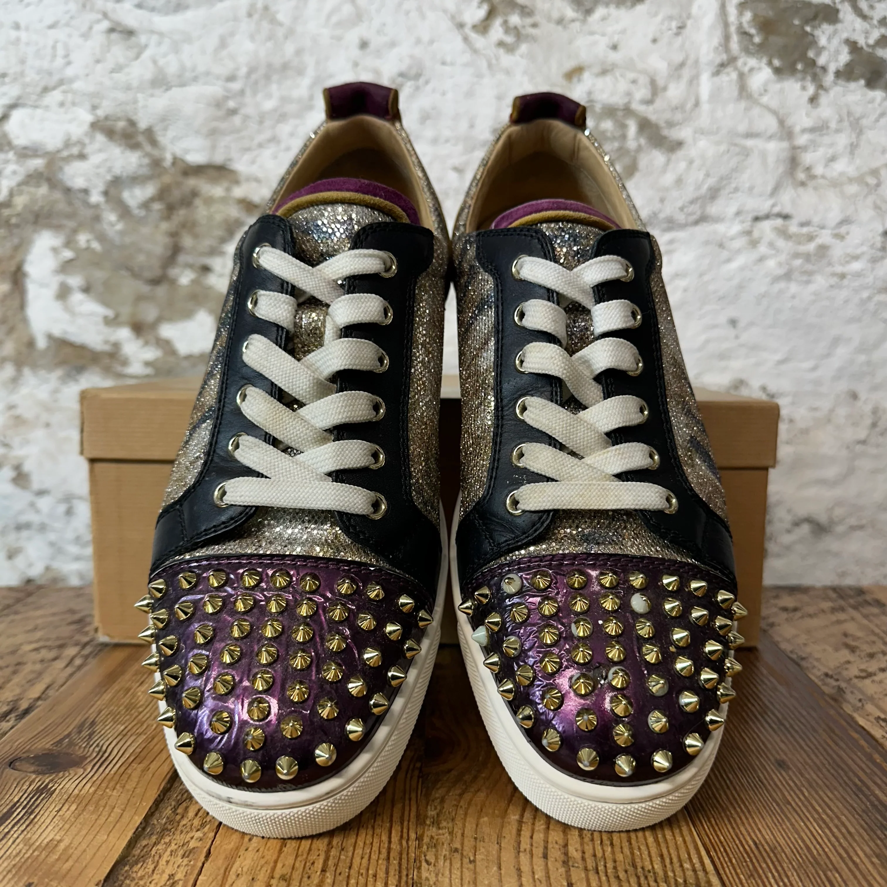Christian Louboutin Gold Maroon Black Sneaker Sz 11 (44)