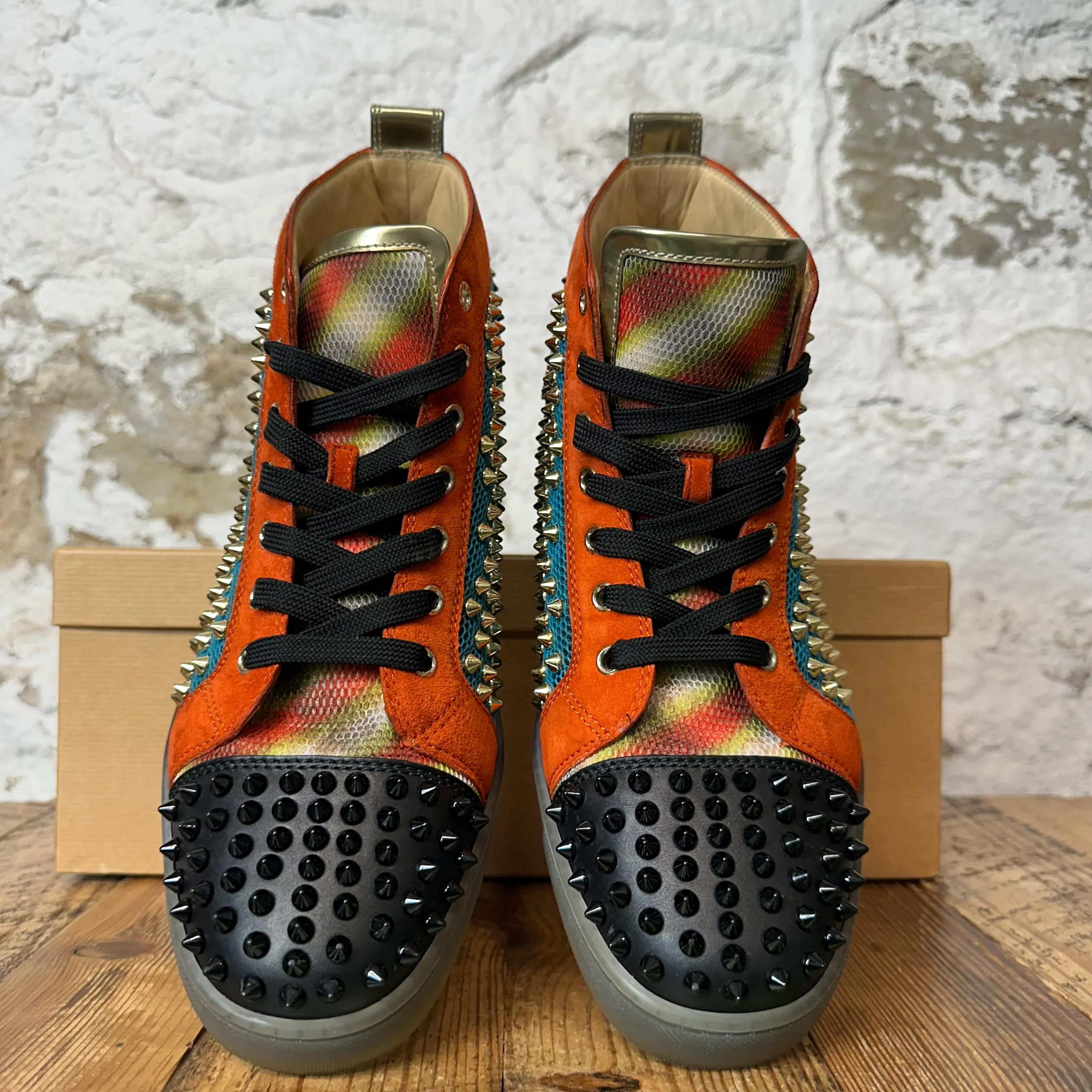 Christian Louboutin High Teal Orange Spike Sneaker Sz 8.5 (41.5)